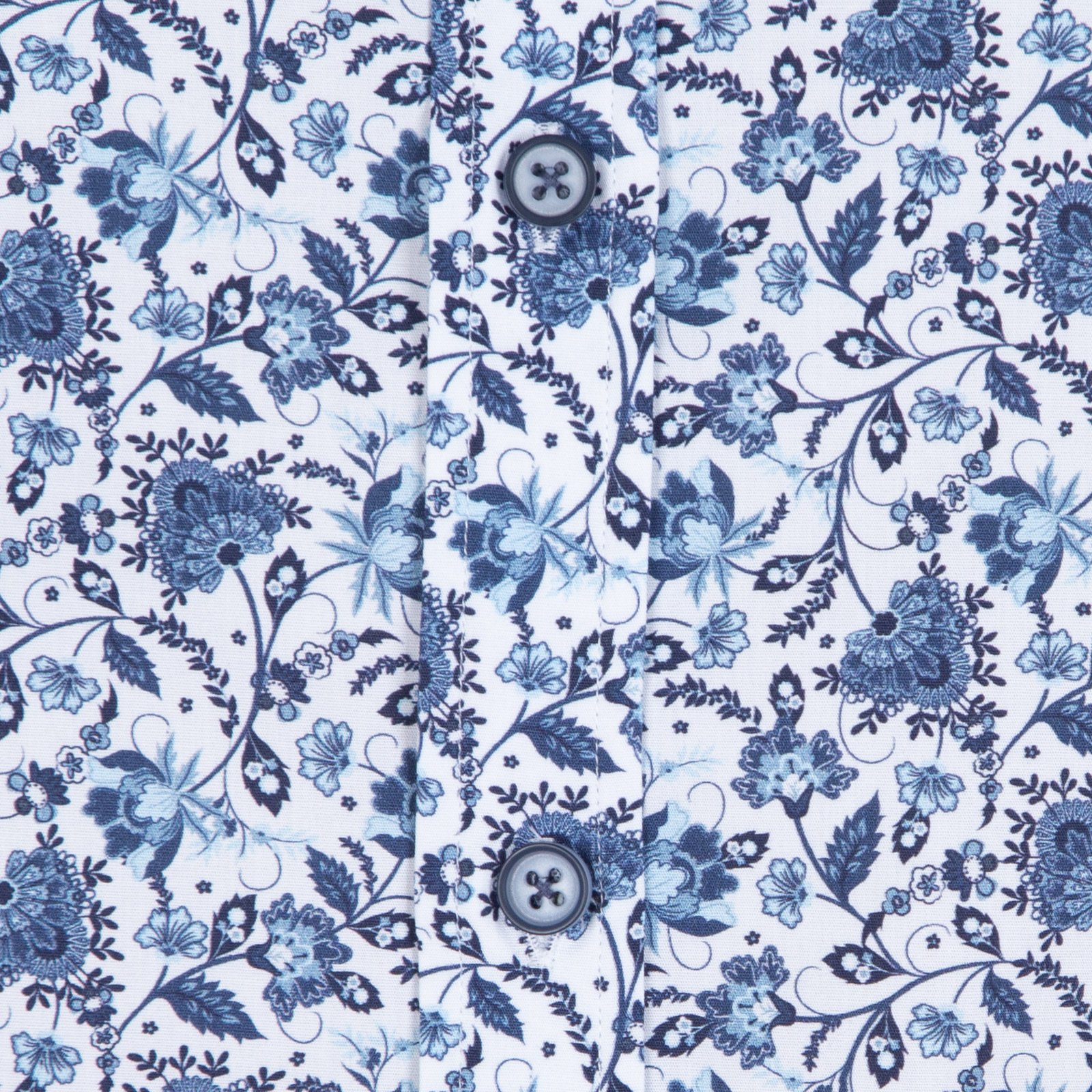 Soft casual short sleeve shirt with a floral print in stretch cotton. Darts in the back for a tapered fit.