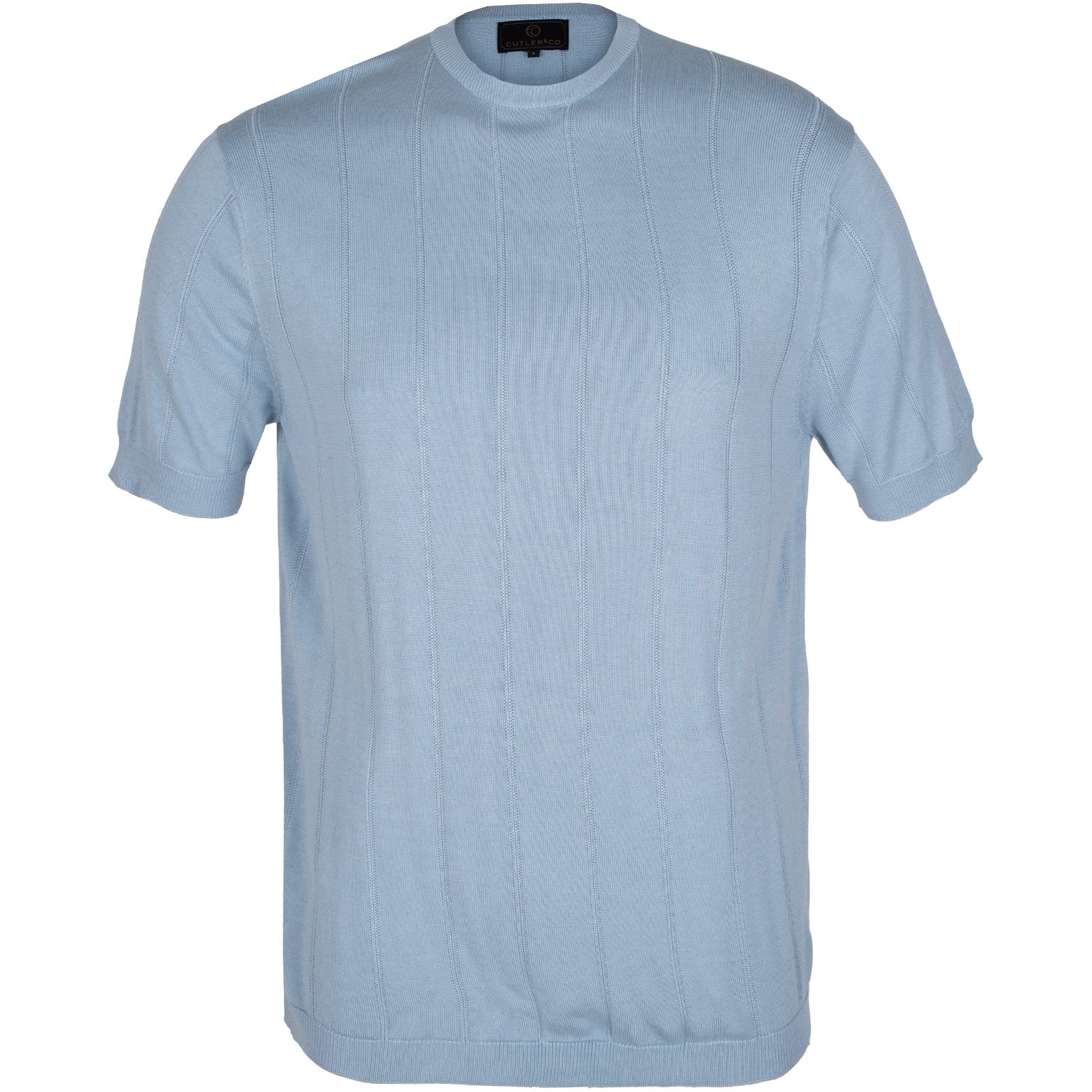 Constructed from a fine modal, rayon & silk blend, this classic short-sleeve crew neck pullover features a wide rib knit pattern with ribbed neck and waistband.