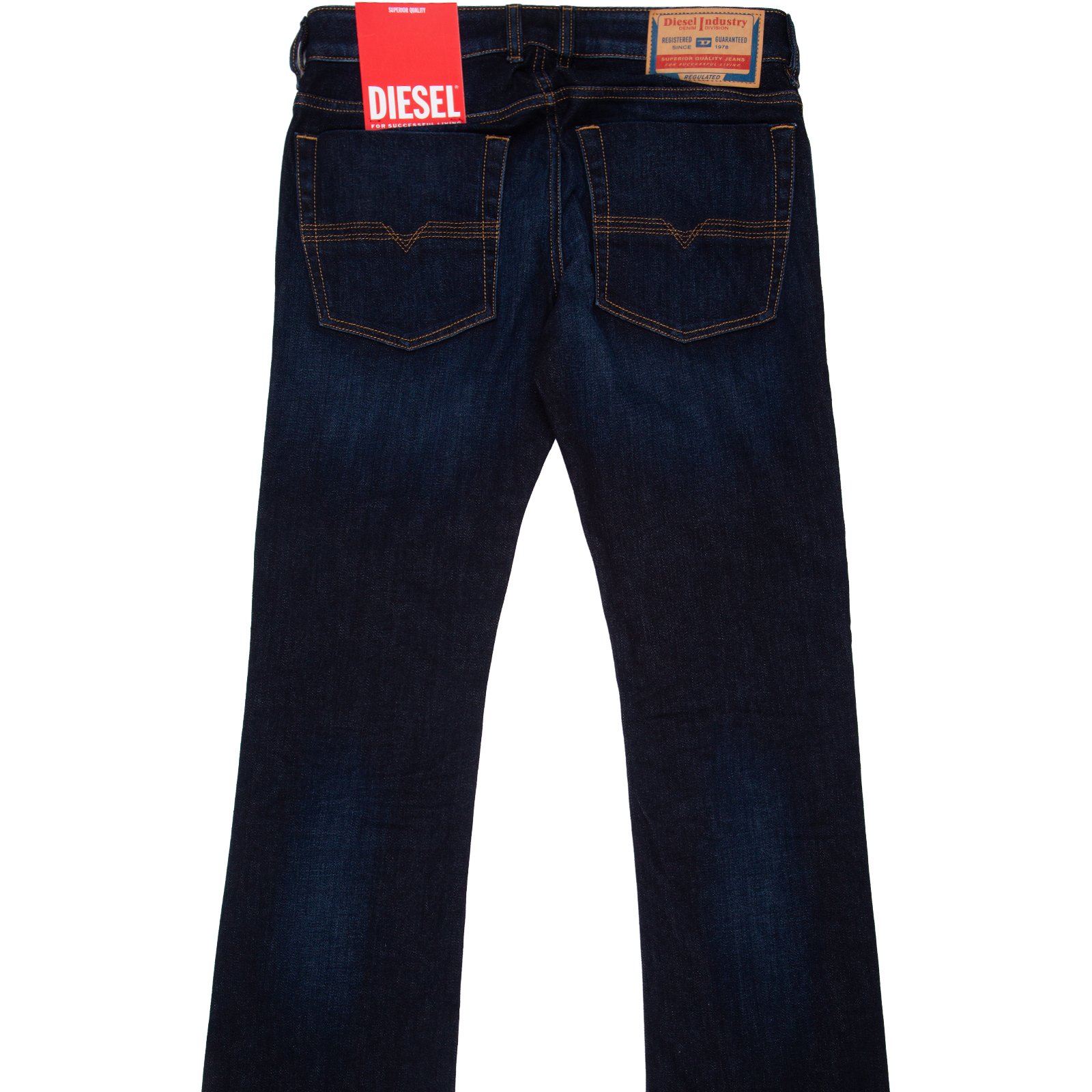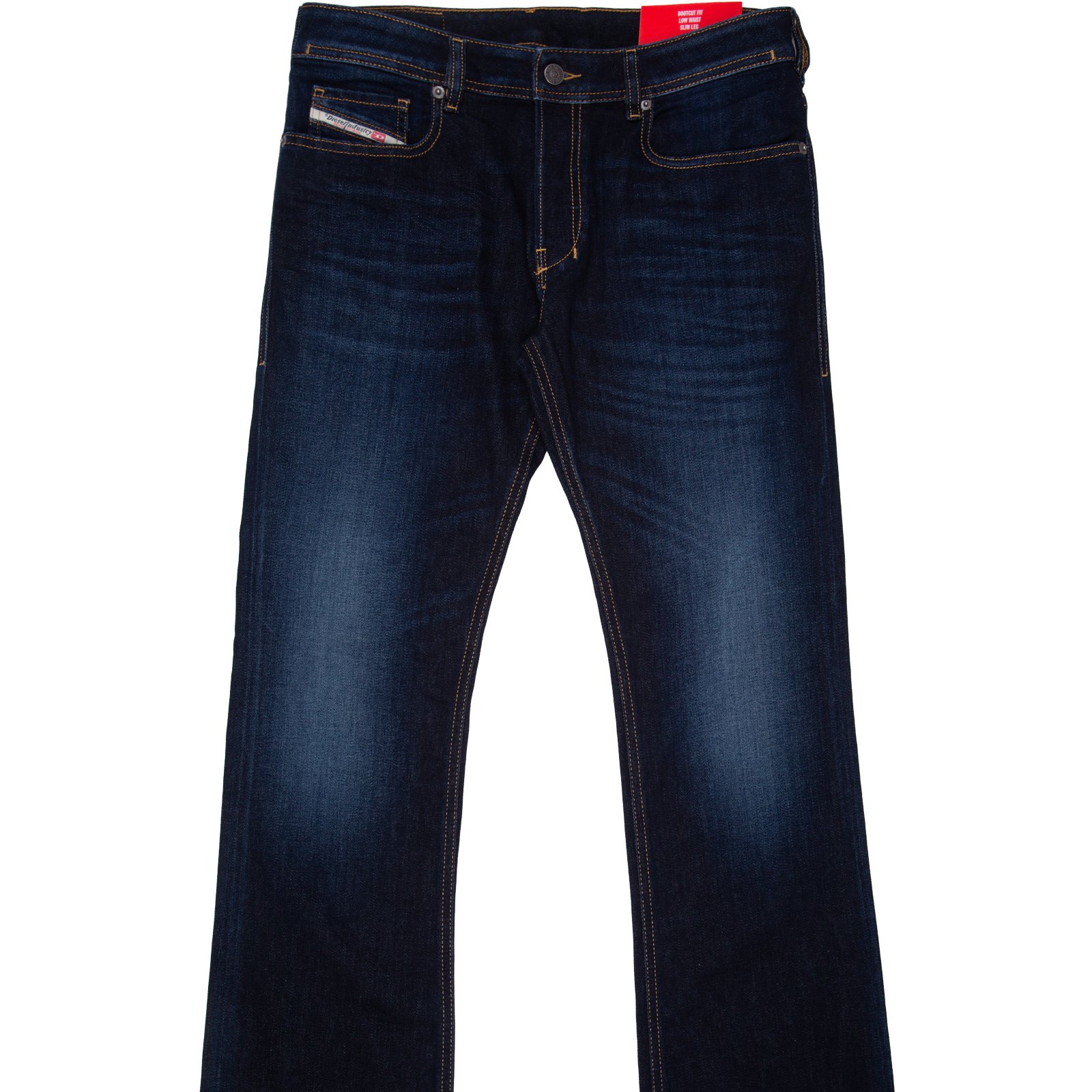 Slim fit with a wider bootcut leg at the bottom. Diesel jean sizes are generally quite generous, so go down a size if you are not familiar with wearing Diesel jeans.