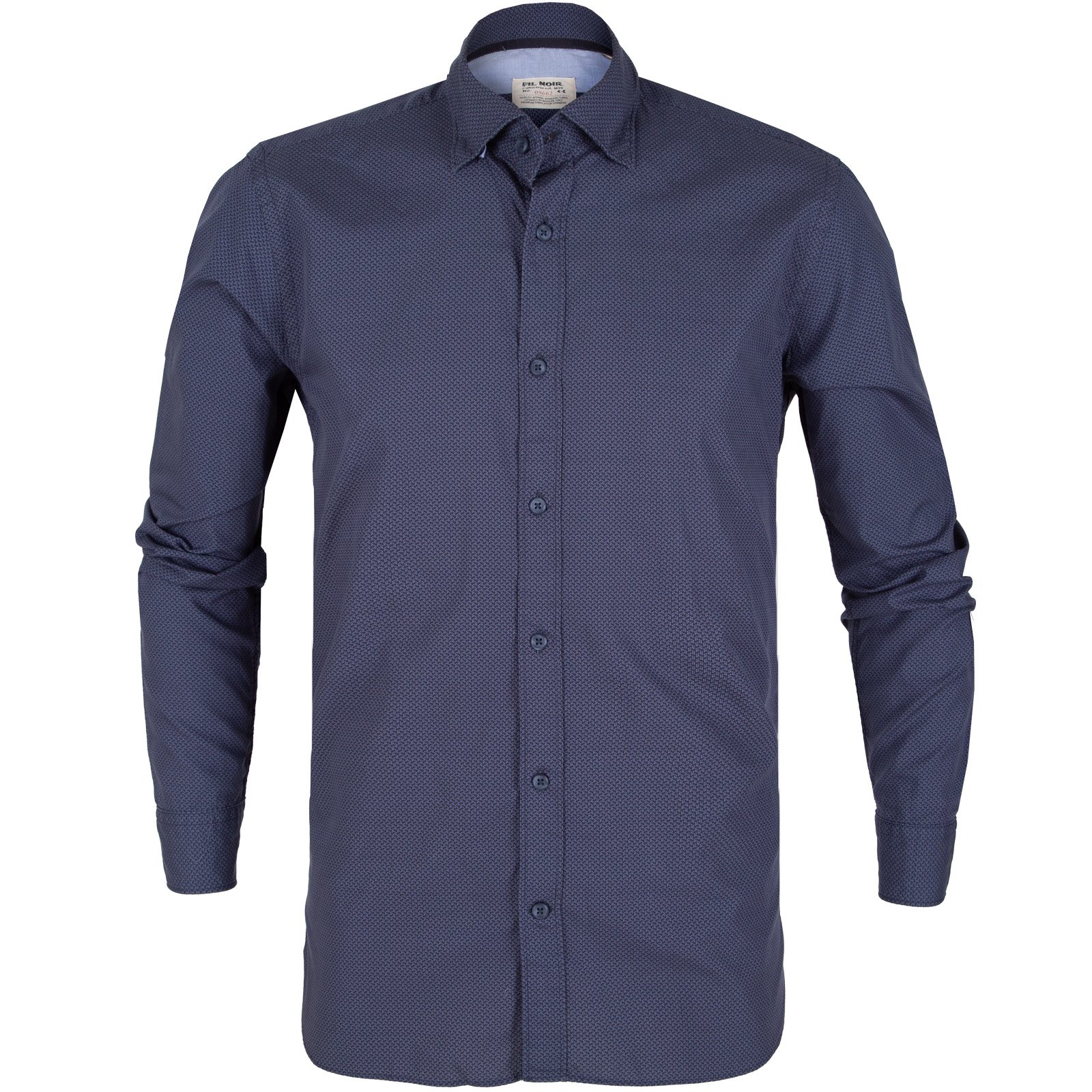 A tapered fit casual shirt in a soft cotton with a tonal micro print and subtle trim detail. Features darts in the back for a tapered fit, and soft fashion under-button down collar.
