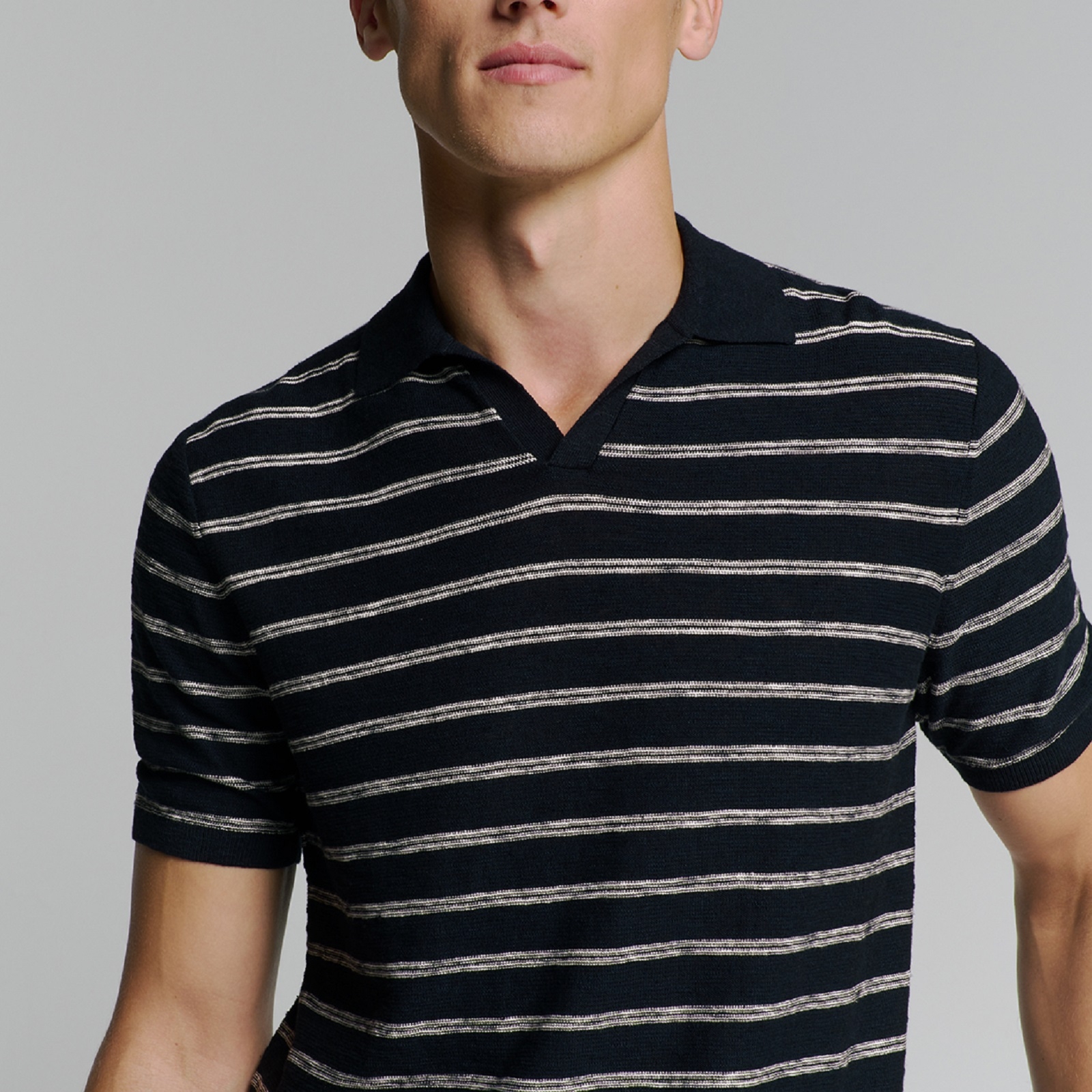Short Sleeve Stripe Knit V Polo