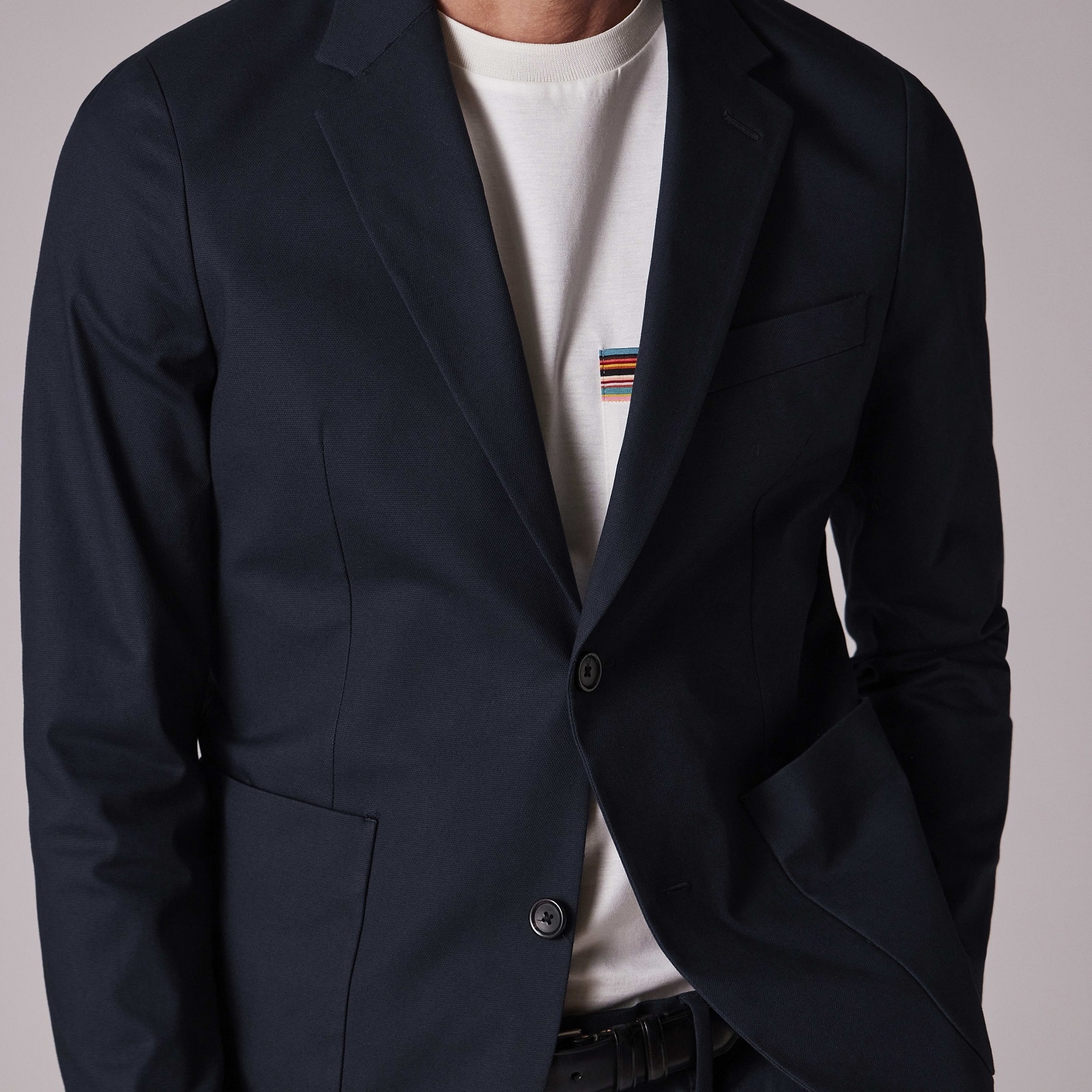Made from an organically grown cotton cloth with stretch for comfort, this blazer features an unlined finish with contrast internal binding - for an added flash of colour. Wear it casually with a fine knit zip-up cardigan and jeans, or dress it up with a white shirt and navy wool dress trousers.