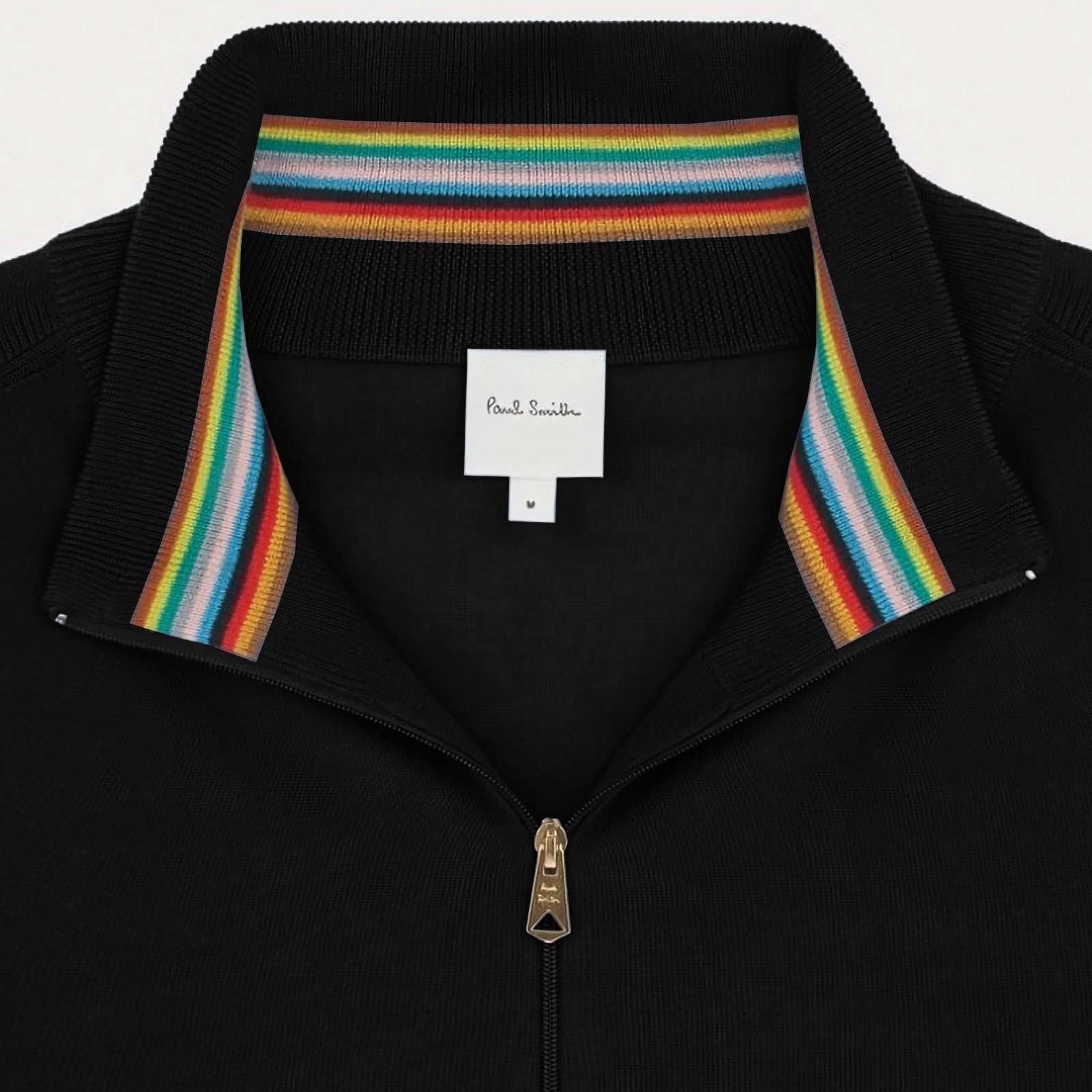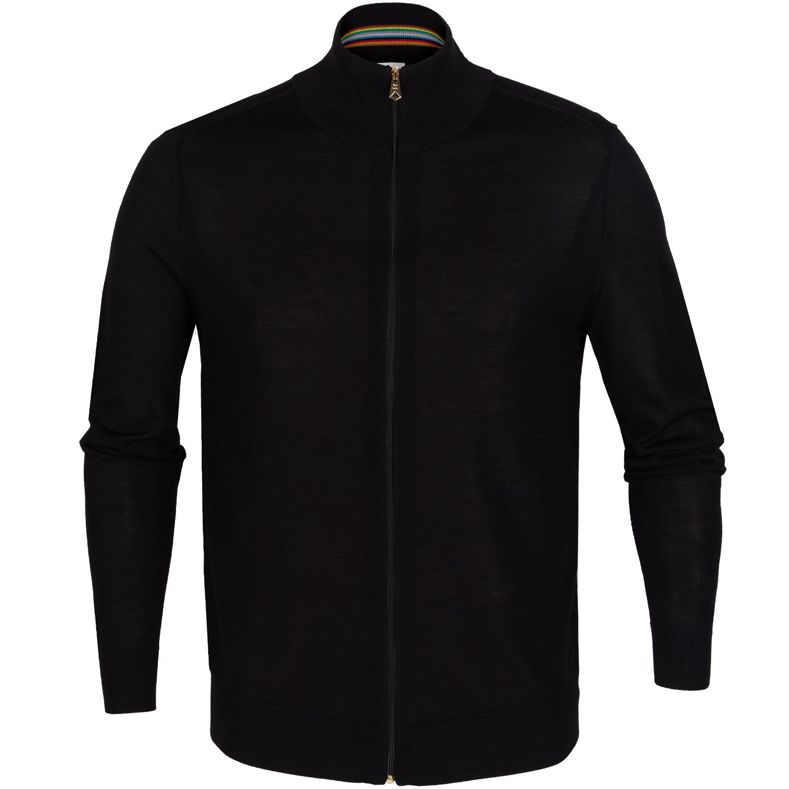 Crafted from a super-soft, luxury lightweight Merino wool - this zip-front cardigan features a funnel neck with a stripe detail inside the collar and a signature-embossed gold tie-shaped zip pull. Wear it over a shirt for work or with a t-shirt, cotton chinos and sneakers for the weekend.