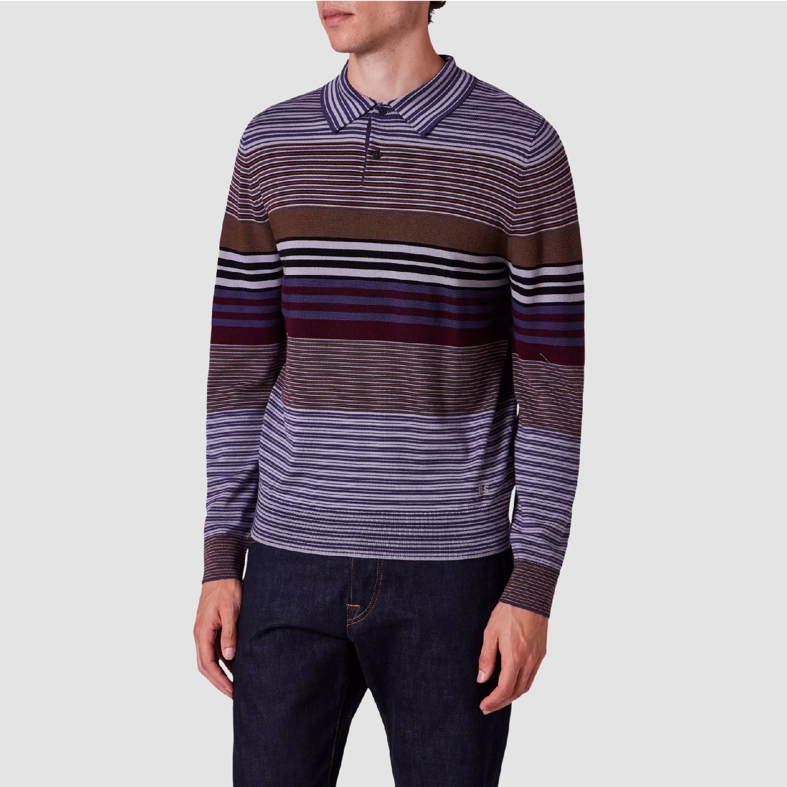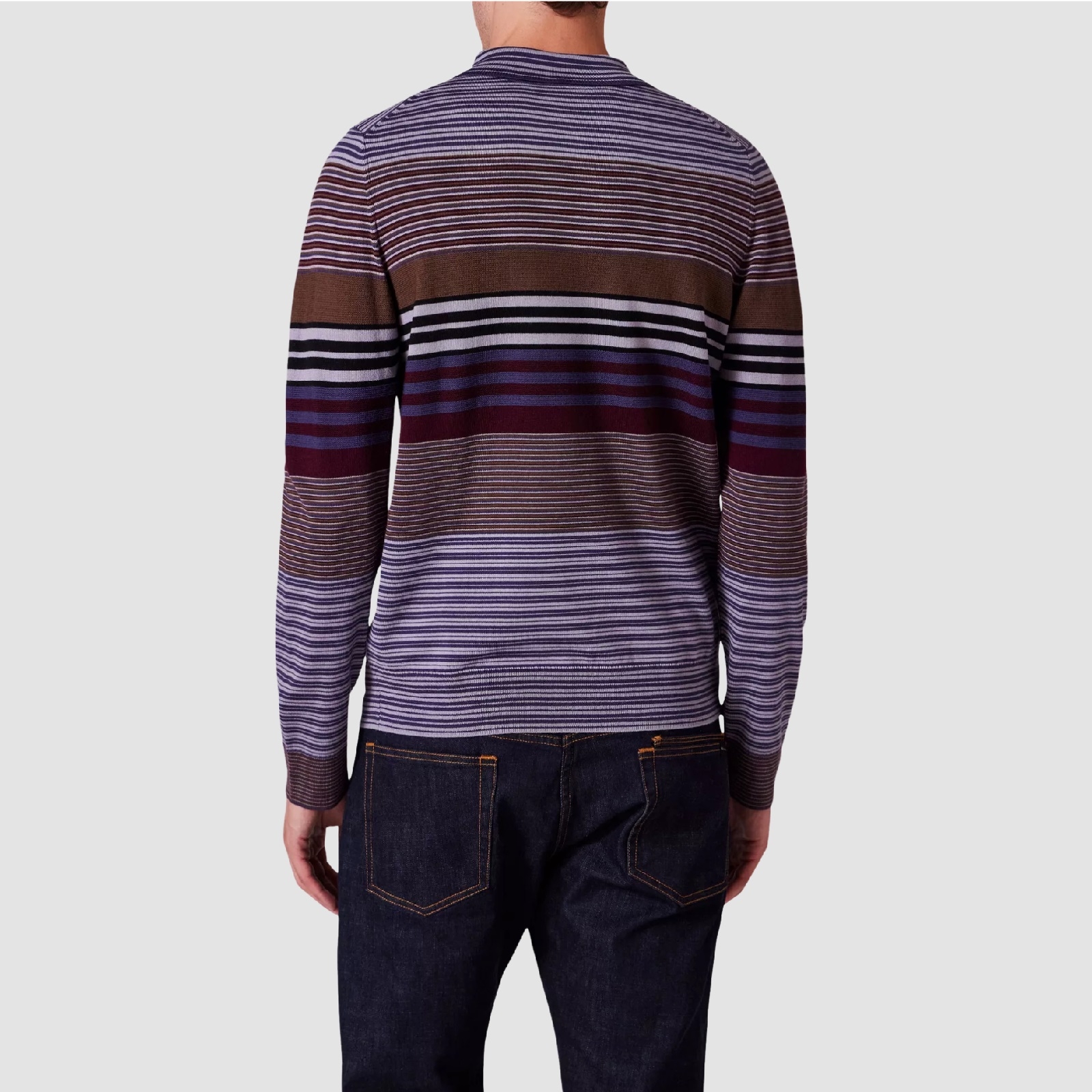 Multi Stripe Merino Wool Polo Pullover