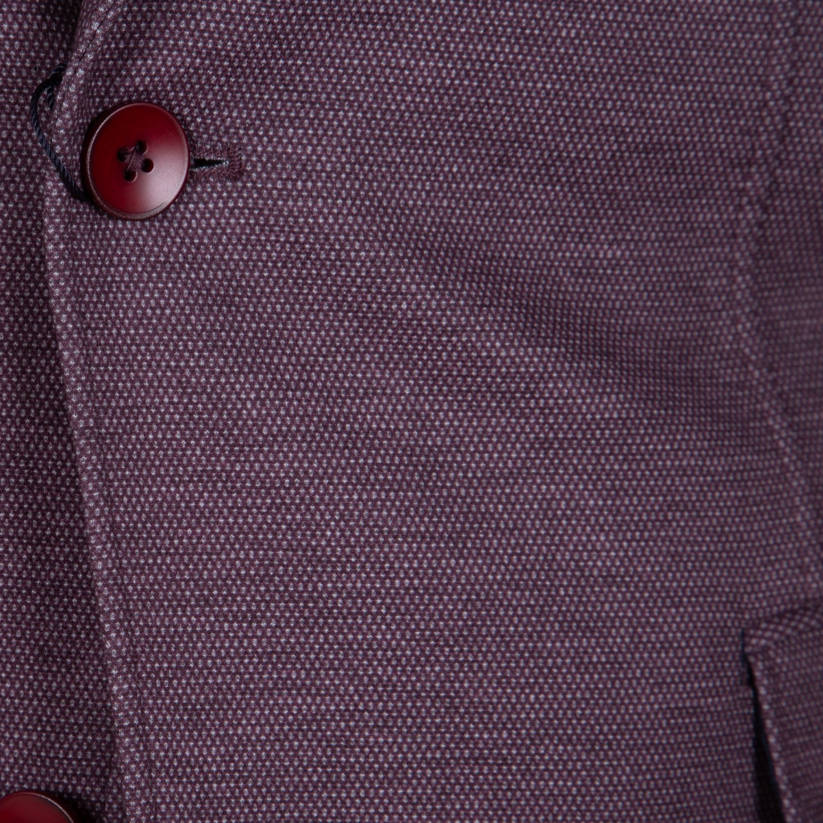 This stretch knit blazer is a fun jacket that is so versatile, and comfortable to wear. Features contrast half lining, with internal pockets, a pocket square, and feature button detail.